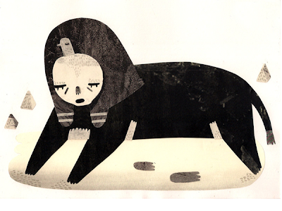 I love the simplicity; the texture; and bold, flat colors of her characters! If bedsheets patterned with her monster collage were available, I know they'd be on my holiday wish list.
